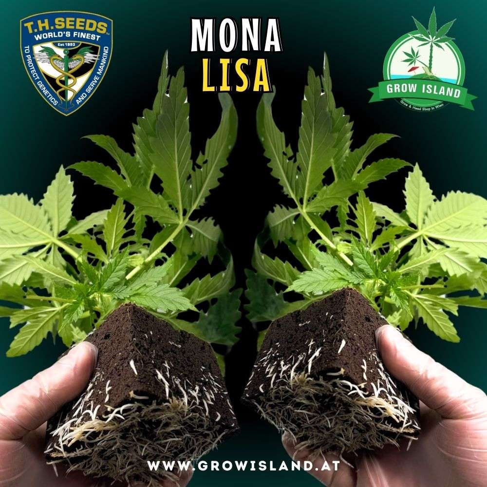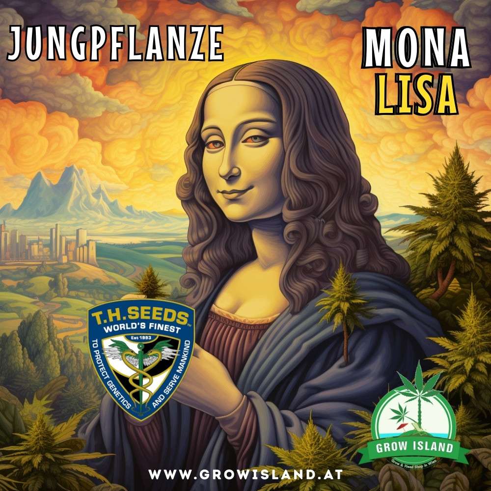 Jetzt als Sämling im Grow Island Webshop erhältlich – Mona Lisa von T.H.Seeds ist ein einzigartiger Hybrid, entstanden aus der edlen genetischen Kombination von Black Apple, London Pound Cake 75 und Kushmints 11. Diese Sorte bietet ein ästhetisches Erlebnis, das den Titel „Meisterwerk“ zu Recht verdient – ihr Erscheinungsbild erinnert an ein modernes botanisches Gemälde.